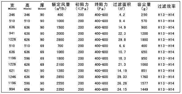 五、“梓凈”DOP液槽密封式高效過濾器技術(shù)參數(shù):