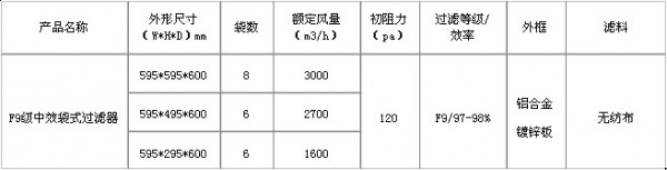 F9級袋式中效過濾器風(fēng)量與阻力