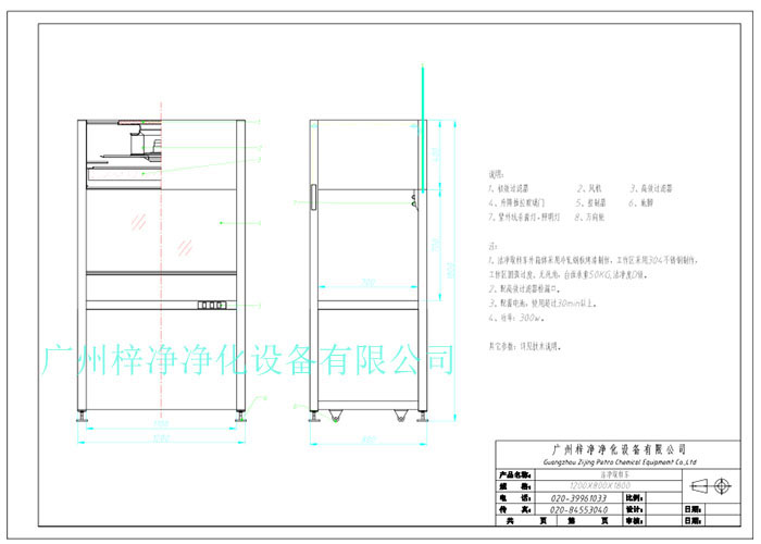1、從室內空氣經過初效過濾器,從高效空氣過濾器出風,配無隔板高效過濾器過濾效率為:99.99@0.3μm和G4級初效過濾器,確保凈化級別,靜態100級美聯邦209E標準;